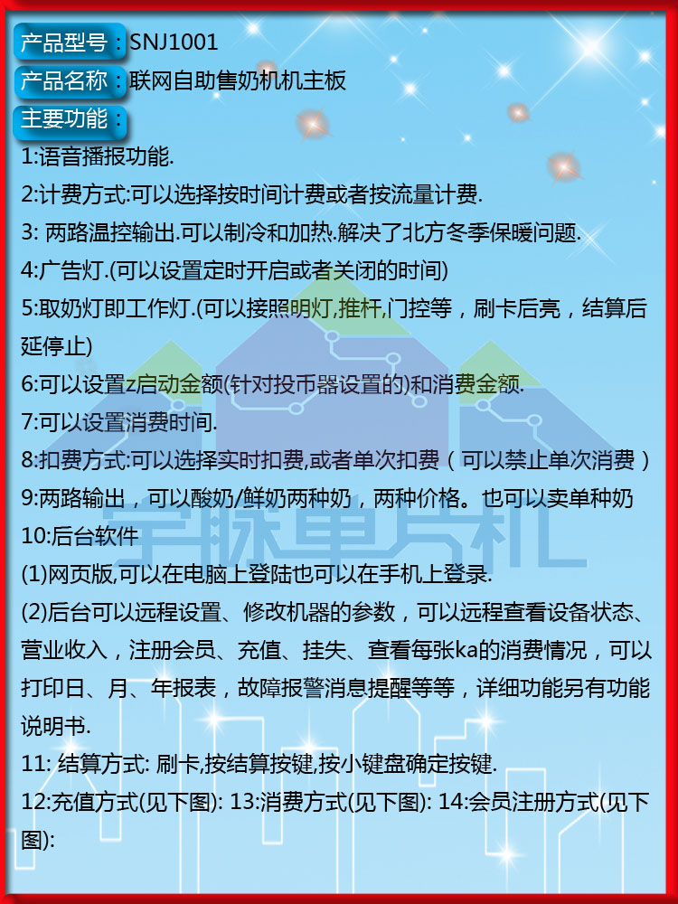 宇脉MCU单片机厂家,主控设备自助研发生产,联网自助售奶机控制器主板,联网多功能自助设备,支持定制开发,真正拥有自己的研发团队。多种支付方式如:投币、刷卡、微信、支付宝等方式,宇脉厂家自主研发的自助系统,系统会不定期的升级, 提供免费升级功能,让您的设备不落后于时代,社会在进步, 我们也在进步。我们坚守着“只有客户好,公司才能发展得更好”的理念,只要您相信我们,我们愿与您共同成就更好的未来,共同成长,共同发展,携手打造一体化智能智慧社区。社区一卡通,让您拥有大数据管理!欢迎来电咨询:18520500709/400-1898-020