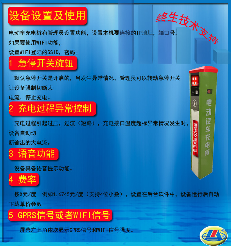 充电桩器功能类似于加油站里面的加油站,可以固定咋=在地面或墙壁,安装与公共建筑(公众楼宇、大型商场,公共停车场、其实也单位等)和居民的小区停车场或充电站内,可以根据不同的电压等级为各种型号的电动汽车充电。充电桩的输入端与交流电网直接连接,输出端都桩有充电插头用于为电动汽车充电。充电桩一般提供常规和快速充电两种方式,人们可以使用特定的充电卡在充电桩提供的人际交互操作界面上刷卡使用,进行相应的充电方式、充电时间、费用数据打印等操作,充电桩显示屏能显示充电量、费用、充电所用的时间等数据。