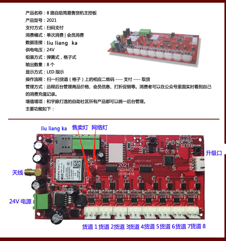 微信刷卡投币自助售货机主控板,宇脉MCU单片机厂家,自主研发生产销售,联网多功能支持定制开发,真正拥有自己的研发团队。 提供免费升级功能,让您的设备不落后于时代。我们坚守着“只有客户好,公司才能发展得更好”的理念,只要您相信我们,我们愿与您共同成就更好的未来,共同成长,共同发展,携手打造一体化智能智慧社区。社区一卡通,让您拥有大数据管理!