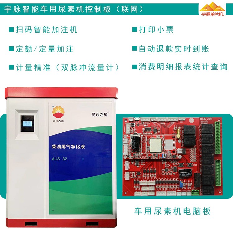宇脉车用尿素自助加注主控功能:设备24小时无人自助,操作简便;占地面积少,方便管理;车用尿素加注设备对尿素溶液自动进行二次过滤,对产品进行有效的遮光,隔热,有力保障产品质量,有强大的网络后台管理系统,可清晰记录每笔消费数据,pc端和手机端可实时查询,支付方式可灵活选择。宇脉车用尿素加注设备不仅提供了快捷方便的加注模式,节约了车用尿素包装成本,而且还有效解决了大型车队、物流园对车用尿素消耗的管理难题。车用尿素自助加注设备将成为柴油车加注尿素的新趋势。